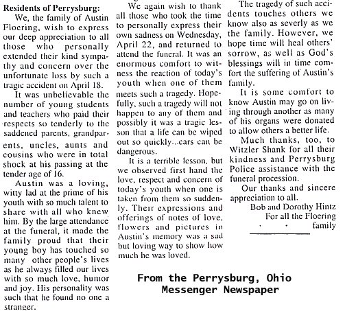 Floering Family expression of appreciation. (from the Perrysburg Messenger